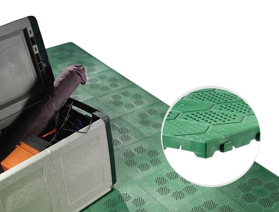 Plaadid ühilduvad omavahel hambumisega mis hoiavad plaadid kindlalt paigas. Kiire ja lihtne paigaldus ilma tööriistu kasutamata.