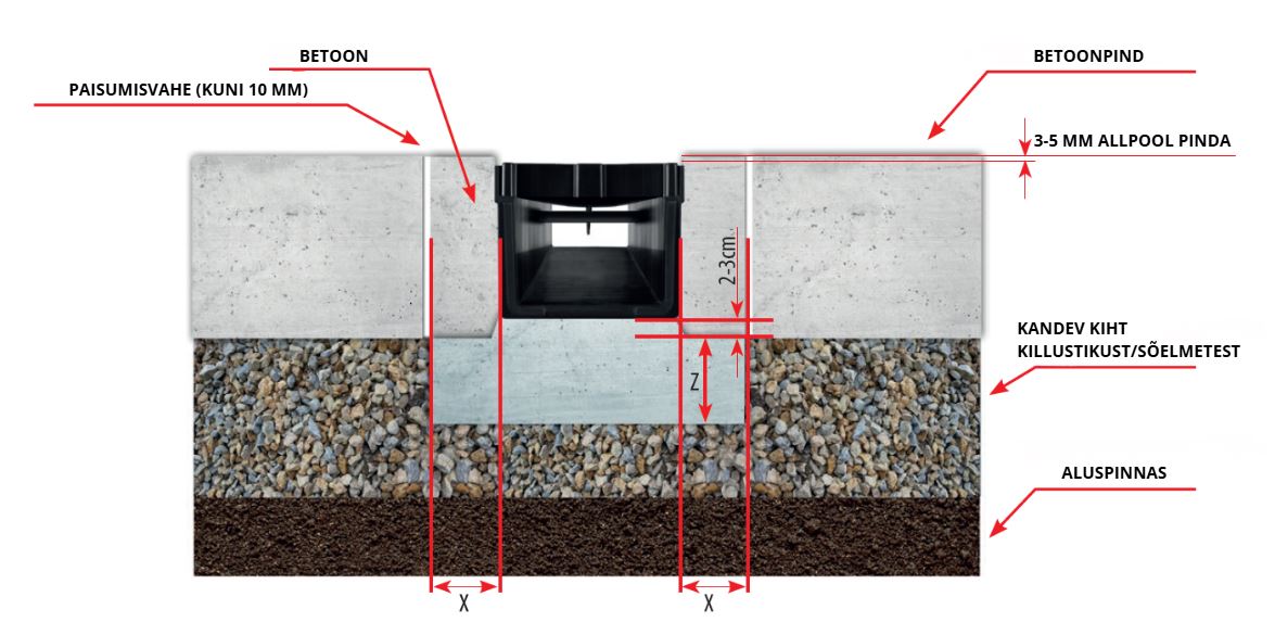 Plastikust drenaažisüsteemide paigaldusjuhis betoonpinda
