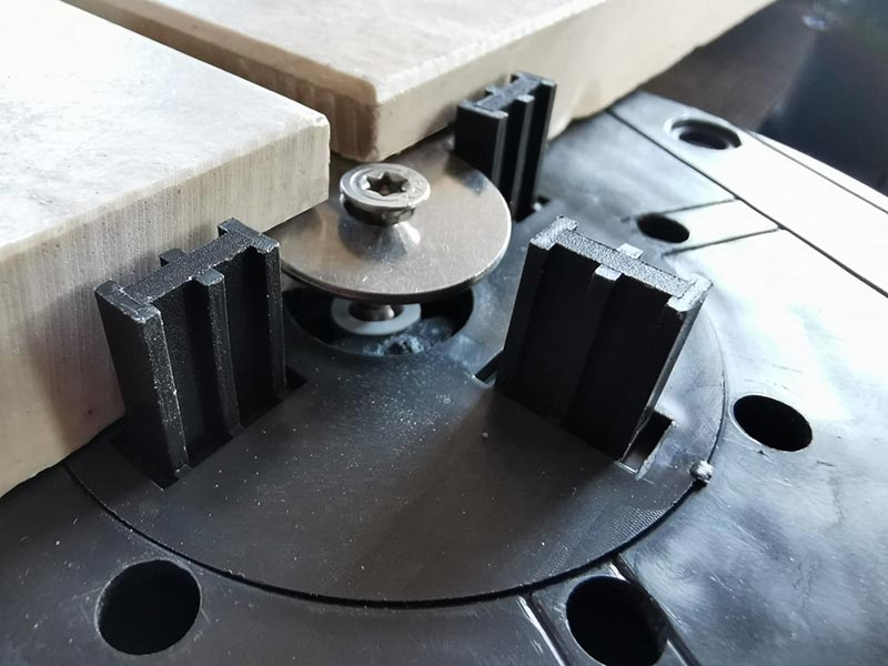 Katuseterassidel või kõrgete hoonete rõdudel olevatel terassidel, kus on terrassiplaadid võib tekkida olukord, et terrassiplaadid võtavad tuule alla. Max reguleeritavatel jalgadel on valikus tuulekindluse komplekt. Komplekt, mis aitab plaate mehaaniliselt kinnitada jala külge tugeva tuule korral. Seda komplekti kasutades tuleb lõigata lõhe plaadi nurka.